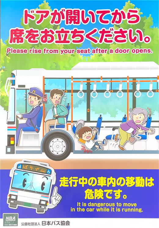 バスの車内事故防止に皆様のご理解とご協力をよろしくお願いします。